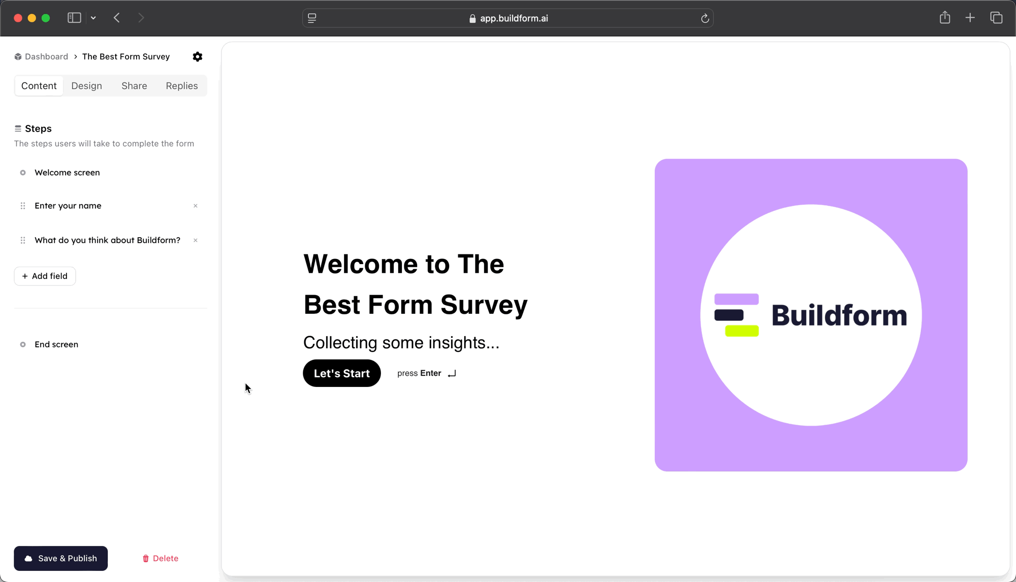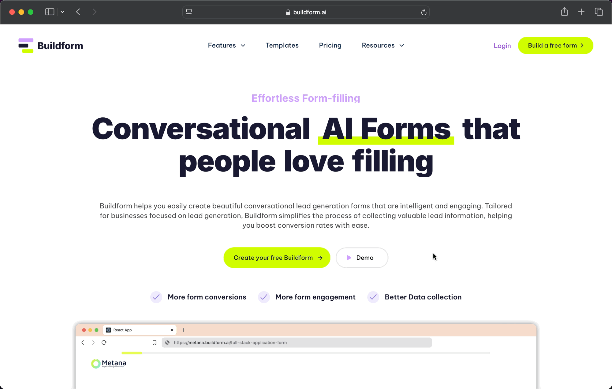 Welcome to Buildform! We're here to help you effortlessly create beautiful, conversational lead-generation forms that are not only engaging but also smart. With BuildForm, you can streamline your lead-capturing process while providing a personalised experience for your users, making it easier than ever to connect and grow your business.